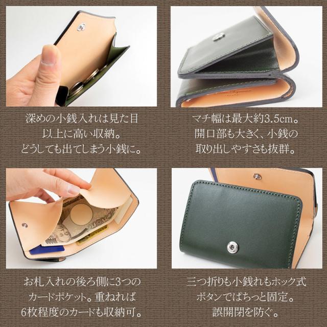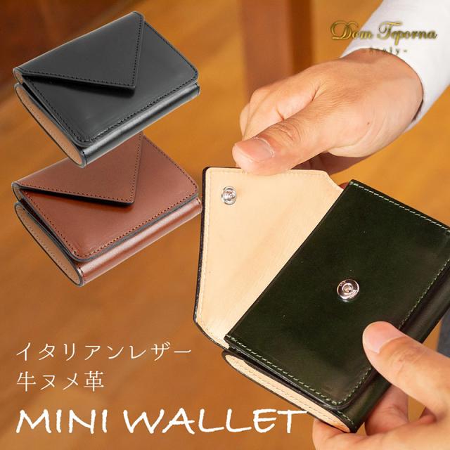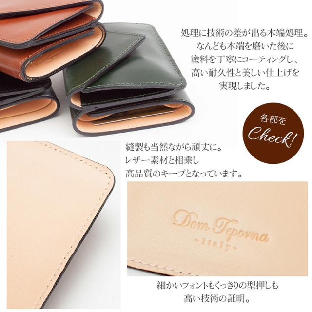 【限定200円OFFクーポン】【3,780円→3,580円】Dom Teporna Italy 総本革三つ折り財布 イタリアンレザー お札折らない ヌメ革 ボタン型 小銭入れ カード入れ コンパクト