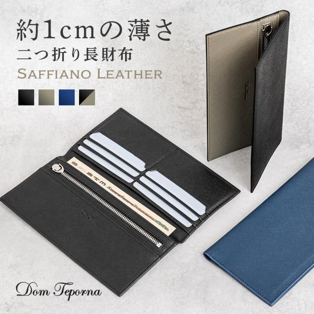 【限定1,000円OFFクーポン】【3,980円→2,980円】\紙幣入れ月間ランキング1位/Dom Teporna 薄さにこだわる牛革二つ折り長財布 メンズ 薄型 カード大容量6枚 フリーポケット×1 サフィアーノレザー かぶせ お札入れ 小銭入れ カード入れ 薄い財布 YKKファスナー