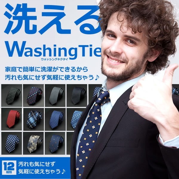 洗えるネクタイ 12種類 ウォッシングネクタイ 洗濯 丸洗い スーツ シワ ポリエステル コーディネート 汚れ 営業 仕事 独身