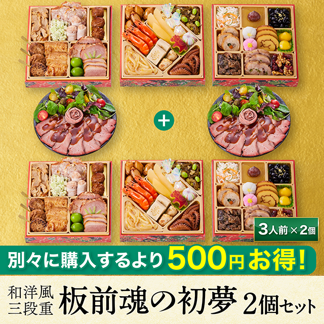 【本日限定!ポイント5倍+最大2,000円OFFクーポン】おせち 完売間近 予約 おせち料理 板前魂の初夢 2個セット 和洋風三段重 ローストビーフ 付き 3人前 34品目 人気 正月 冷凍 食品 肉 2025 2026 送料無料