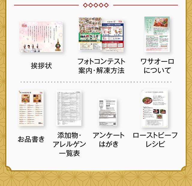 (お品書き、添加物・アレルゲン一覧表、解凍方法付き)