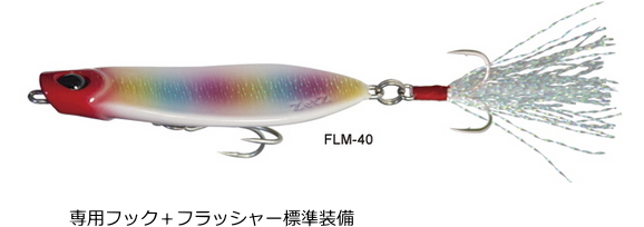 フラットフィッシュをメインターゲットとして開発された特異なメタルジグ。基本スペックはV字型のボディによりゆっくりとローリングしながらフォール。リーリング時にはテールを左右に振るワイドウォブリングでフラッシング効果を高め、逆スラントしたヘッド部はロッドアクションにより水を受けて跳ね上がり、短い距離でもしっかりとリフト&フォールで攻められます。フラットフィッシュ特有の食い上げによるバイトにはベリーにセットされたトリプルフックが有効で、テールに標準装備したフラッシャーフックは、フォール時のスピードを抑えるだけでなく、リーリングで左右に揺れバイトマーカーとしてさらにフッキング率を向上させます。