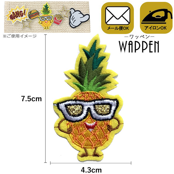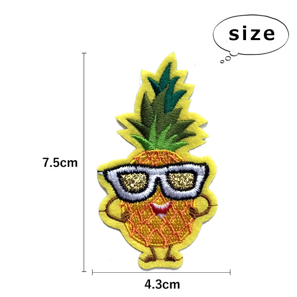パイナップル ワッペン 刺繍 アイロン接着 縦7.5cm×横4.3cm サングラス 果物 フルーツ 食べ物 アップリケ 手芸 母の日 プレゼント ギフト