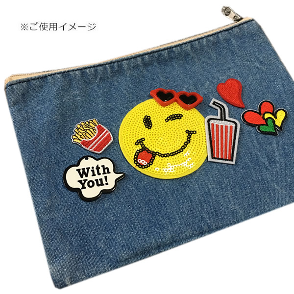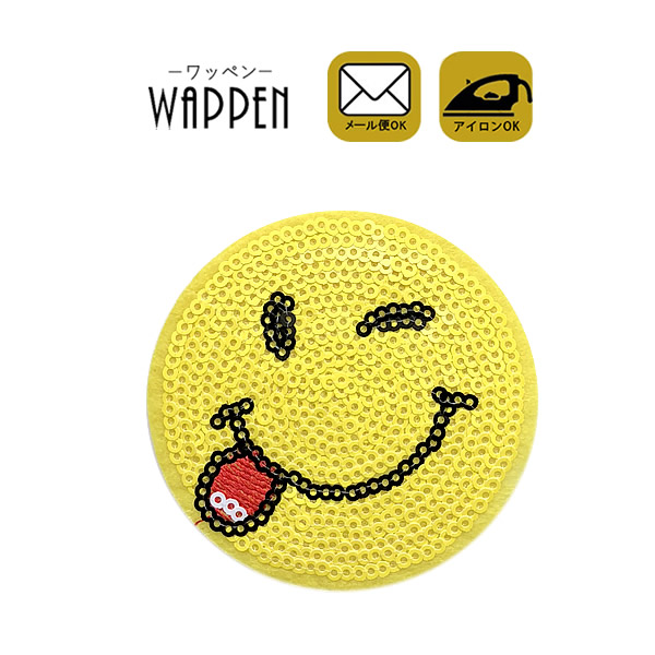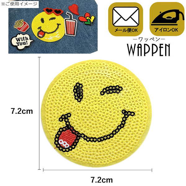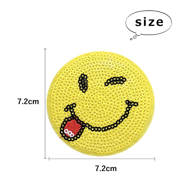 スマイル ワッペン スパンコール アイロン接着 縦7.2cm×横7.2cm 手芸 アイロンワッペン かわいい アップリケ デコ母の日 プレゼント ギフト