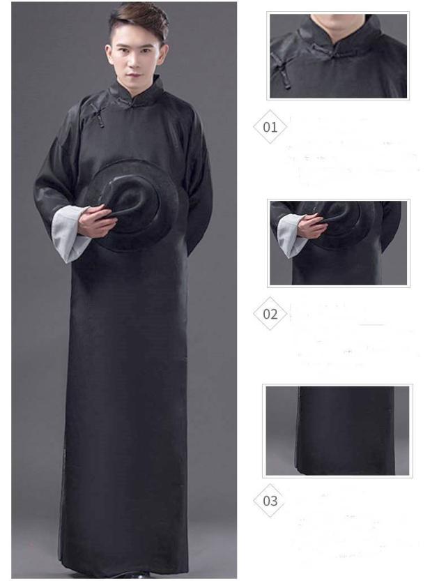 中国の映画やドラマでよく見かける衣装(長袍・チャンパオ)です。少し光沢のある高級感あるサテン生地で制作されています。
