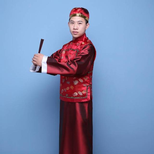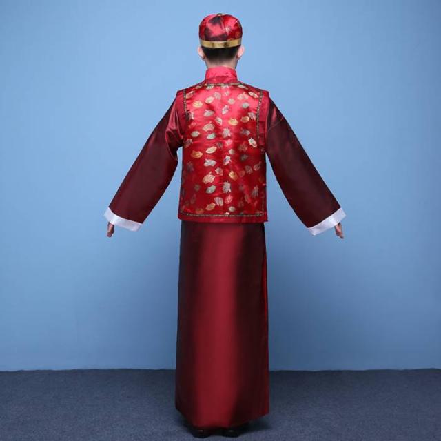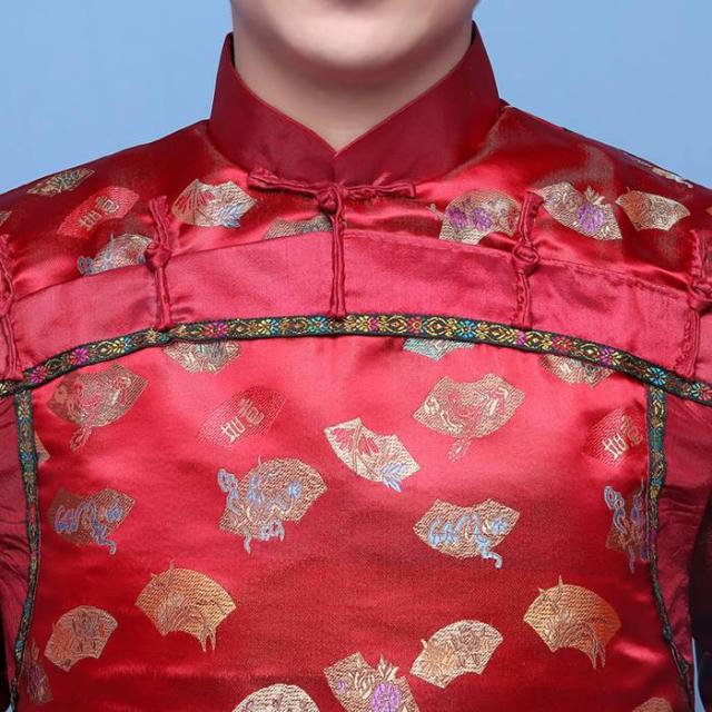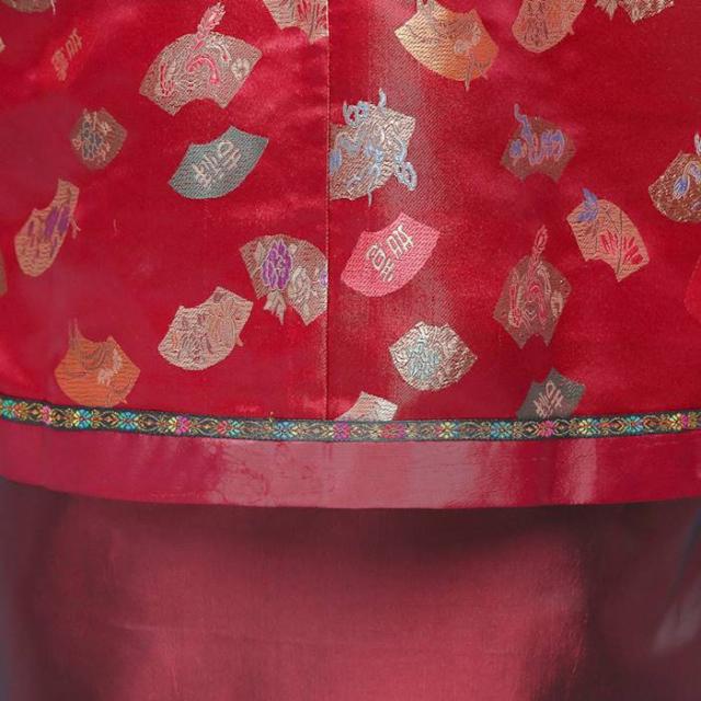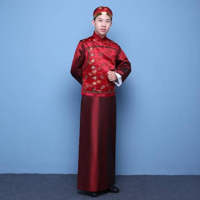 中国清朝服 古装古代地主服 長袍(チャンパオ) サテン地 酒紅色