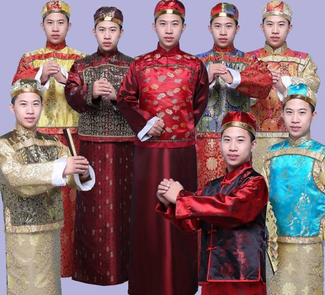 中国清朝服 古装古代地主服 長袍(チャンパオ) サテン地
