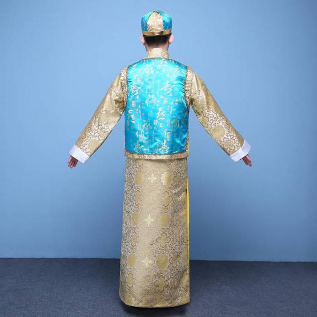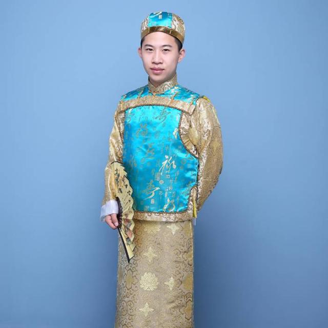 中国清朝服 古装古代地主服 長袍(チャンパオ) サテン地