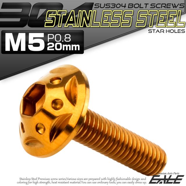 ボタンボルト スターホールヘッド M5×20mm P0.8 フランジ付 六角穴 SUS304 ステンレス ゴールド TR0230