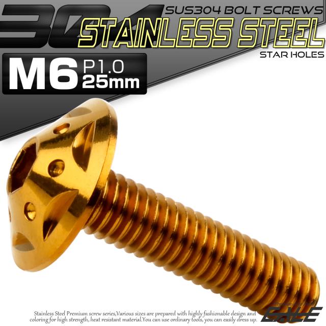ボタンボルト スターホールヘッド M6×25mm P1.0 フランジ付 六角穴 SUS304 ステンレス ゴールド TR0236