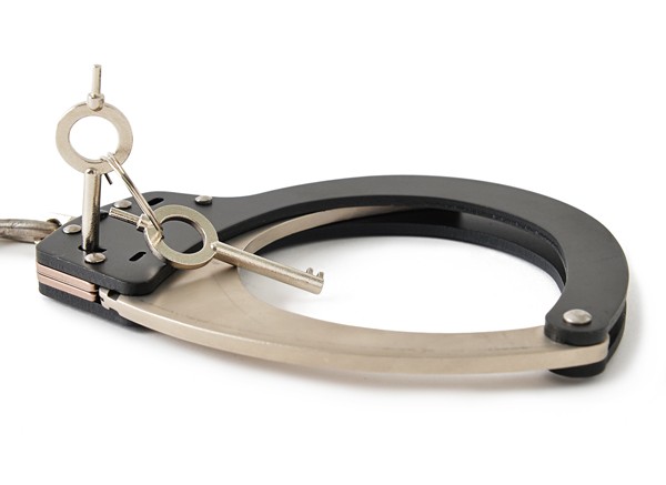 ダブルロックの使い方は尖った鍵の先端をフラットな鍵穴に刺してスライドさせるとダブルロックが機能します。ダブルロック解除の方法は丸い鍵穴に鍵を差し込み回すと解除します。もう一度回すと手錠が開錠します。 カギは標準で4個付いています。