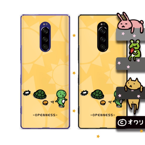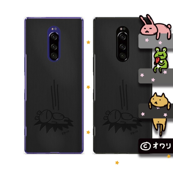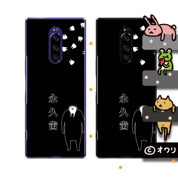 Xperia 1 (docomo SO-03L / au SOV40 / SoftBank 802SO) (純正卓上充電対応) スマホ ケース カバー オワリ 「永久歯キャラクター」 ブラック