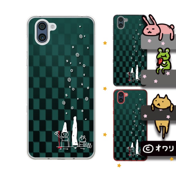 AQUOS R3 (docomo SH-04L / au SHV44 / SoftBank 808SH) スマホ ケース カバー オワリ 「雪のカキ氷とパンダ」 グリーン