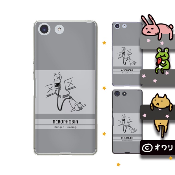 docomo Xperia Ace SO-02L (純正卓上充電対応) スマホ ケース カバー オワリ 「クマのバンジージャンプ」 グレー