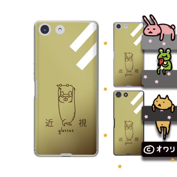 docomo Xperia Ace SO-02L (純正卓上充電対応) スマホ ケース カバー オワリ 「近視のクマ」 ブラウン