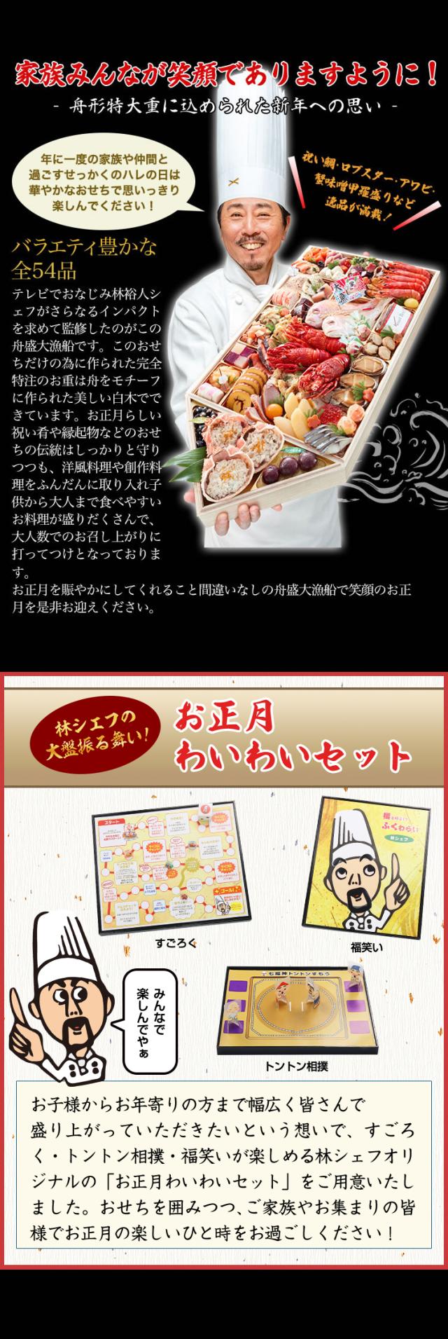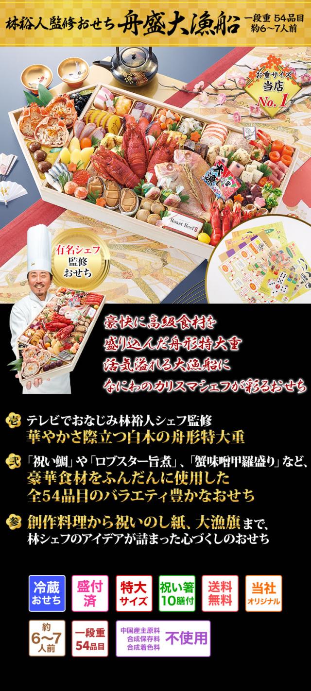超特大一段おせち 【54品目・6〜7人前】 林裕人監修おせち 舟盛大漁船 【送料無料】 冷蔵おせち 冷蔵 おせち お節 御節