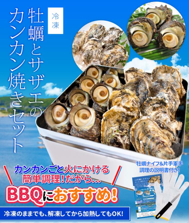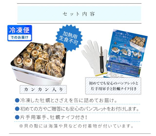 牡蠣 さざえ カンカン焼き セット (冷凍) 送料無料 牡蠣20個とサザエ10個 ミニ缶入り (牡蠣ナイフ・片手用軍手付き) 殻付き 牡蠣 1斗缶 三重県 鳥羽産