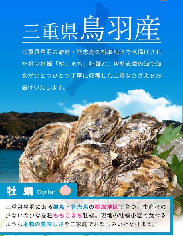 【原産地/摂取海域】牡蠣—三重県鳥羽海域桃取、さざえ—三重県鳥羽産