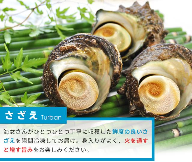 旬の時期の身入りの良い牡蠣と海女さんが獲る鮮度抜群のさざえを水揚げしたばかりの鮮度の良い状態で凍結。火にかけるだけの簡単調理