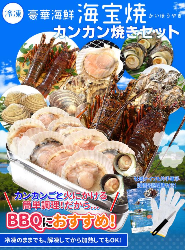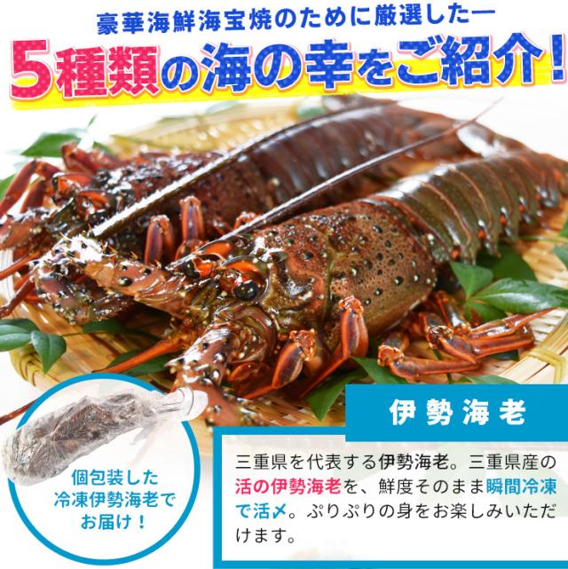 美し国 豪華海鮮海宝焼 カンカン焼き 伊勢海老 中サイズ2個 ほたて 片貝10個 ホンビノス貝2個 牡蠣4個 さざえ2個(牡蠣ナイフ、片手用軍手付)冷凍 海鮮 バーベキュー セット お年賀 ギフト