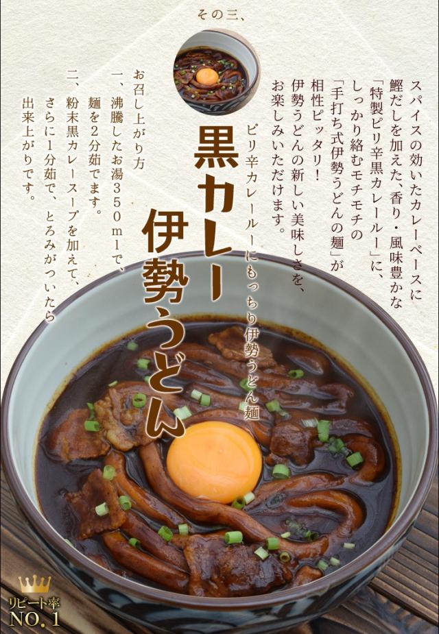 【内容量】伊勢うどん麺2袋・伊勢うどんつゆ2袋×2セットみそ焼きうどん麺2袋・みそだれ2袋×1セット黒カレー伊勢うどん麺2袋・黒カレー伊勢うどん粉末スープ2袋×1セット