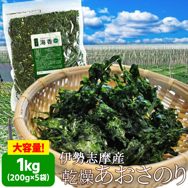 あおさのり 1kg (200g×5袋) 海藻 乾燥 あおさ 伊勢志摩産 海苔 三重県 チャック付袋入