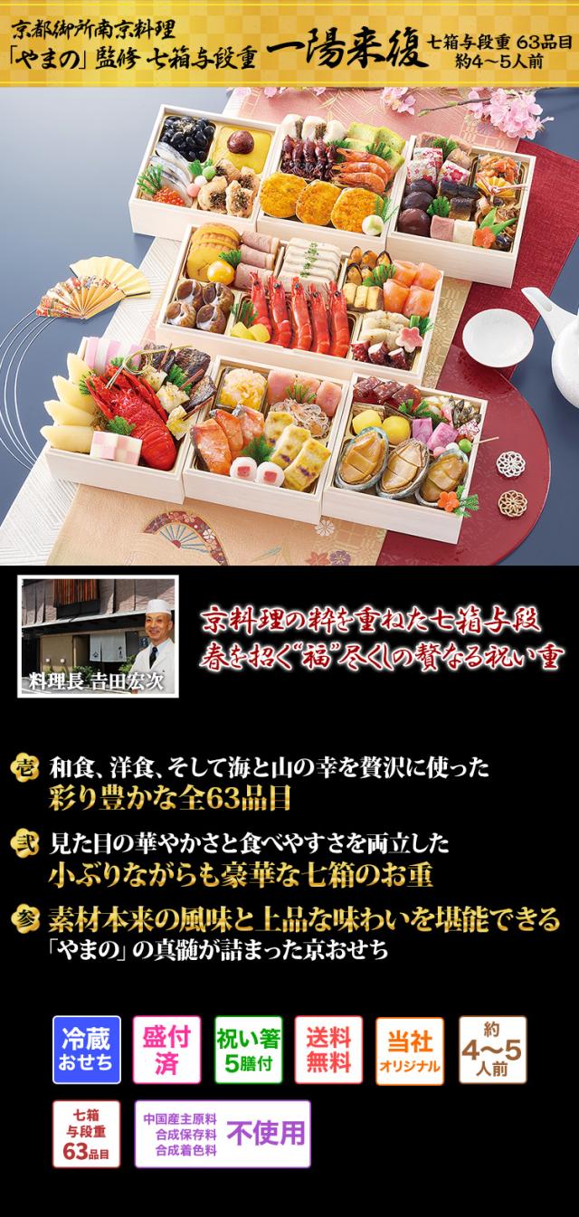 七箱与段重 【63品目・4〜5人前】 京都御所南 京料理「やまの」監修 七箱与段重 一陽来復 【送料無料】 冷蔵おせち 冷蔵 おせち お節 御節