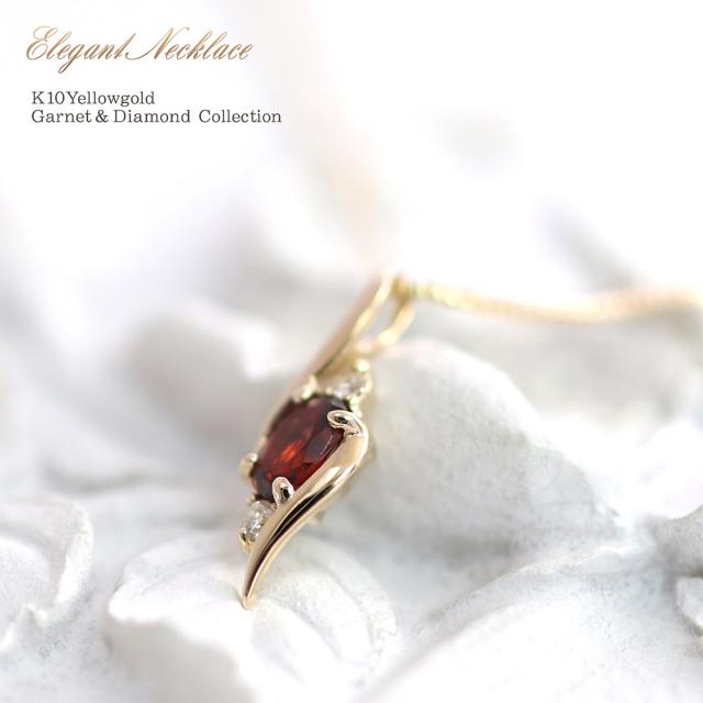 ネックレス ガーネット ダイヤモンド ゴールド ジュエリー プレゼント レディース アクセサリー かっこいい 10K 10金 天然石 赤 レッド 小さめ おしゃれ 大人っぽい ダイヤ ペンダント ホワイトデー お返し 誕生日 贈り物 女性 彼女 妻 嫁 娘
