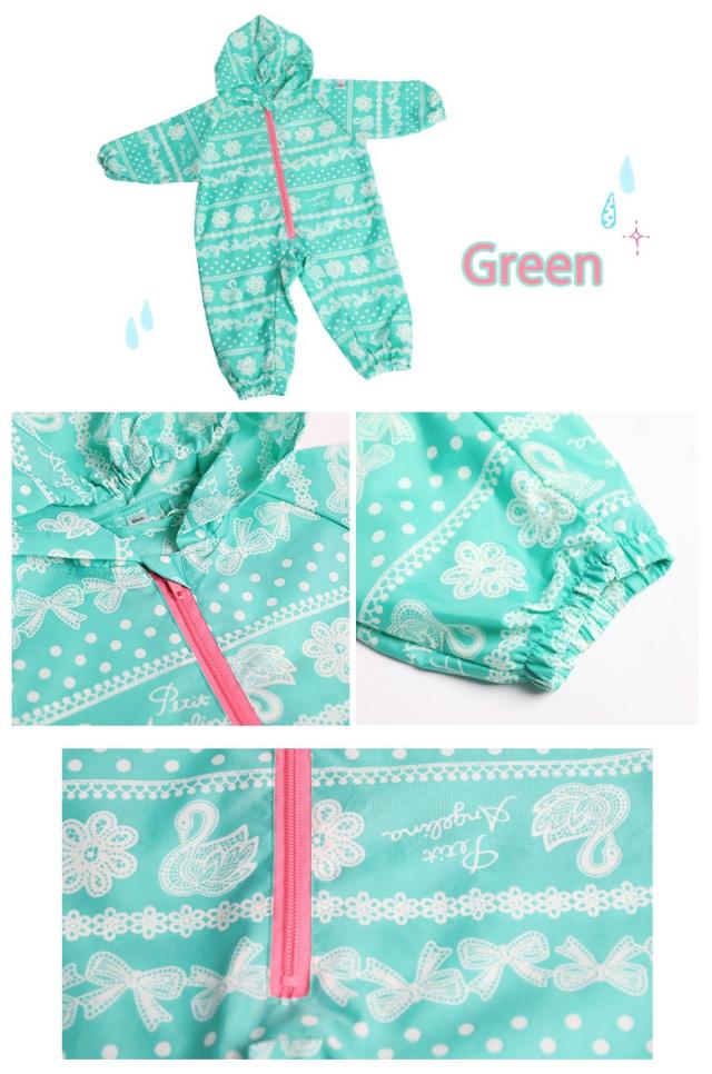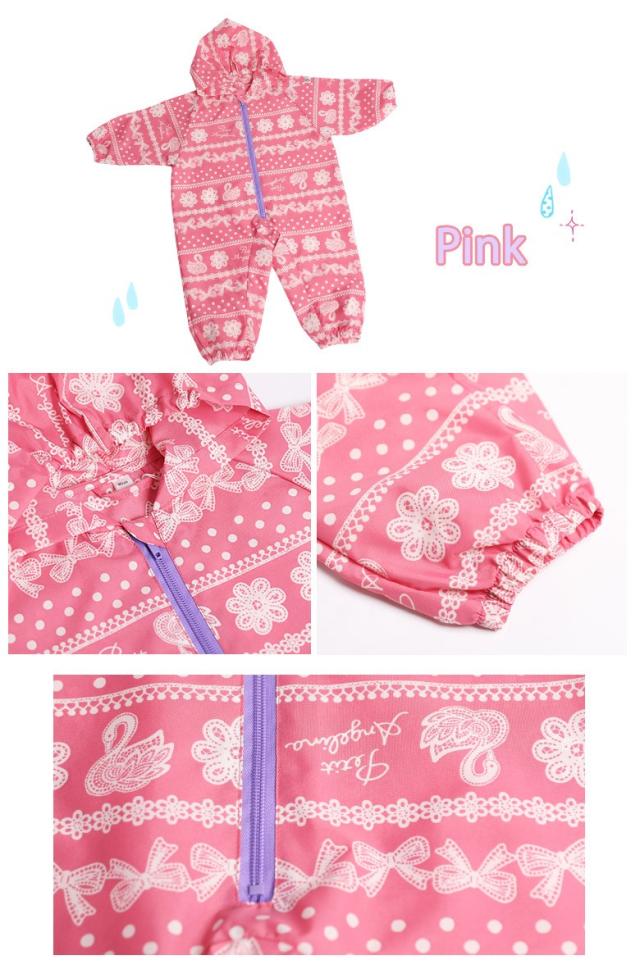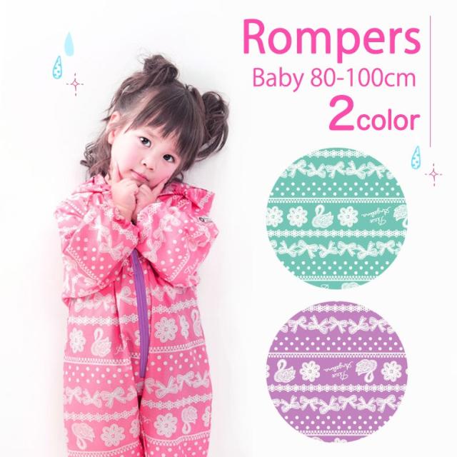 【メール便可】 レインロンパース レインコート レインウェア プレイウェア 砂場着 キッズ ベビー オーバーオール カバーオール レインパンツ 撥水 80 90 100cm レース柄