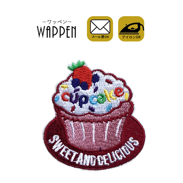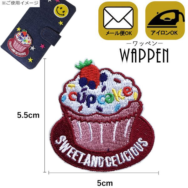 カップケーキ ワッペン 刺繍 アイロン接着 縦5.5cm×横5cm ケーキ スイーツ sweet 食べ物 お菓子 デコ アップリケ 母の日 プレゼント ギフト