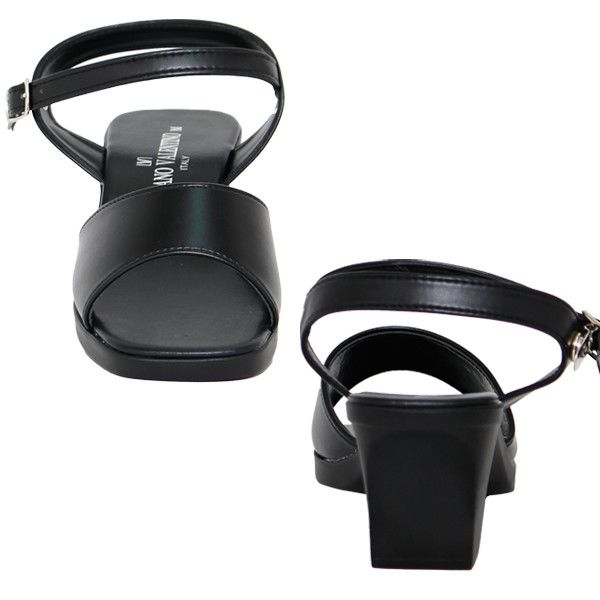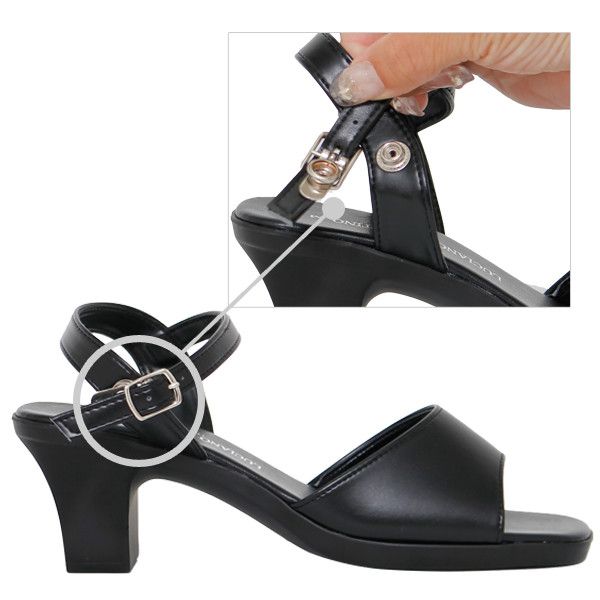 シンプルなブラックのアンクルストラップ付きセパレートサンダルです。安心の日本製で、丁寧な縫製、しっかりした仕上げが評判です。やや高めのヒールで脚長・美脚効果も狙えます。シンプルながら女性らしさも感じられるデザインです。シンプルな使いやすいデザインなので、1年を通じて使えます。きちんと感もあるので、お仕事用やオフィス用サンダルとしてもぴったり。