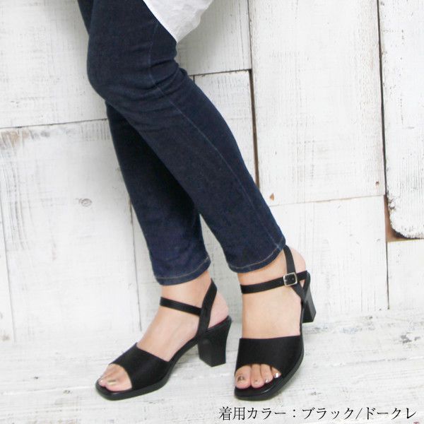 | シンプルなブラックのアンクルストラップ付きセパレートサンダルです。安心の日本製で、丁寧な縫製、しっかりした仕上げが評判です。やや高めのヒールで脚長・美脚効果も狙えます。シンプルながら女性らしさも感じられるデザインです。シンプルな使いやすいデザインなので、1年を通じて使えます。きちんと感もあるので、お仕事用やオフィス用サンダルとしてもぴったり。 |