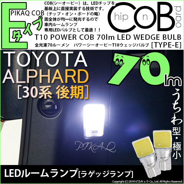 トヨタ アルファード (30系 後期) 対応 LED ラゲッジランプ T10 COB タイプE うちわ型 70lm ホワイト 2個 4-C-2