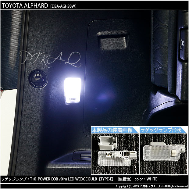| ピカキュウ,LED専門店,LEDバルブ,COB,シーオービーチップオンボード,LED,SMD,T10ウェッジ,ハイブリッド車対応LEDバルブ,明るさ70ルーメン,定電流回路搭載,ラゲッジランプ,ホワイト,トヨタ,TOYOTA,アルファード,ALPHARD,30系 後期,AGH30W,GGH35W,AGH35W,GGH30W |