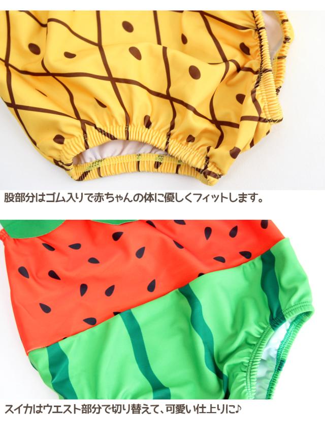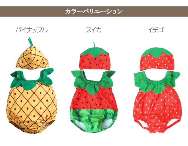 水着 ベビー キッズ 子供 赤ちゃん ベビー水着 キャップ 2点セット 女の子 男の子 80〜95cm パイナップル プール 可愛い おしゃれ 海水浴 メール便送料無料 即納
