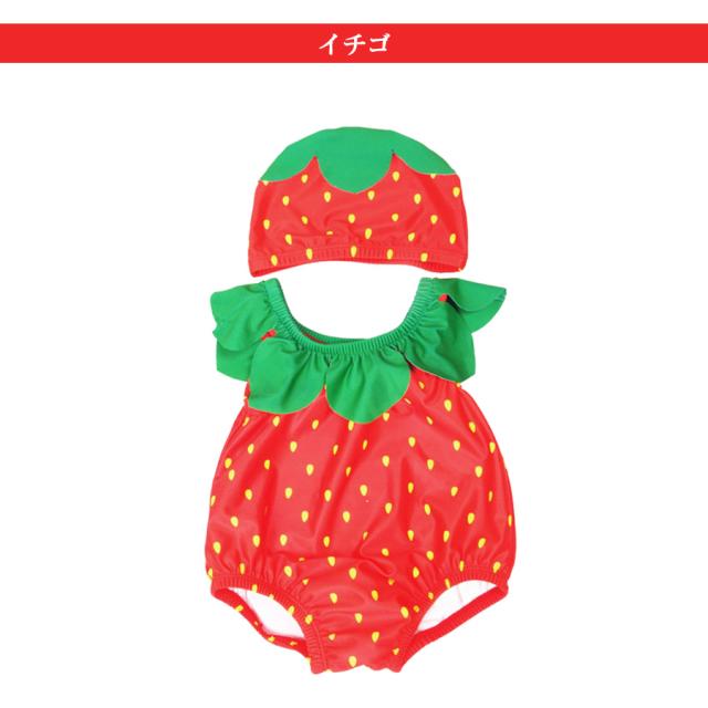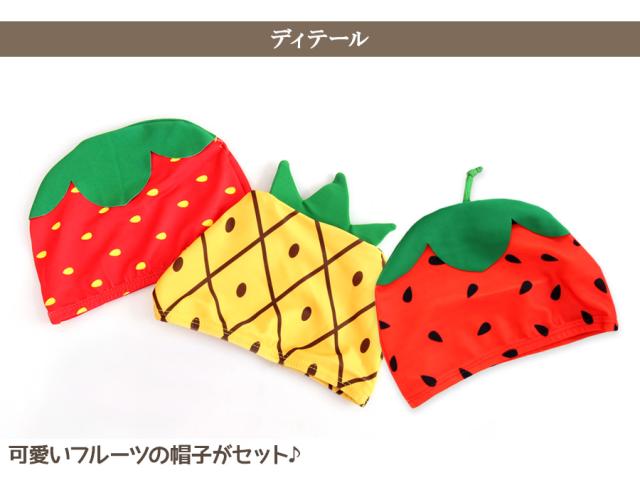 水着と同じフルーツのキャップもセットになって可愛さ倍増!