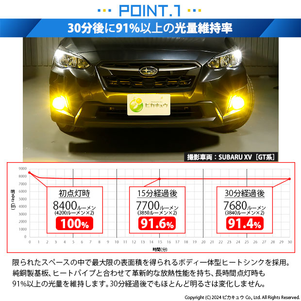 ※ルーメン値は、バルブ2個(車両一台分)の値を示しています。