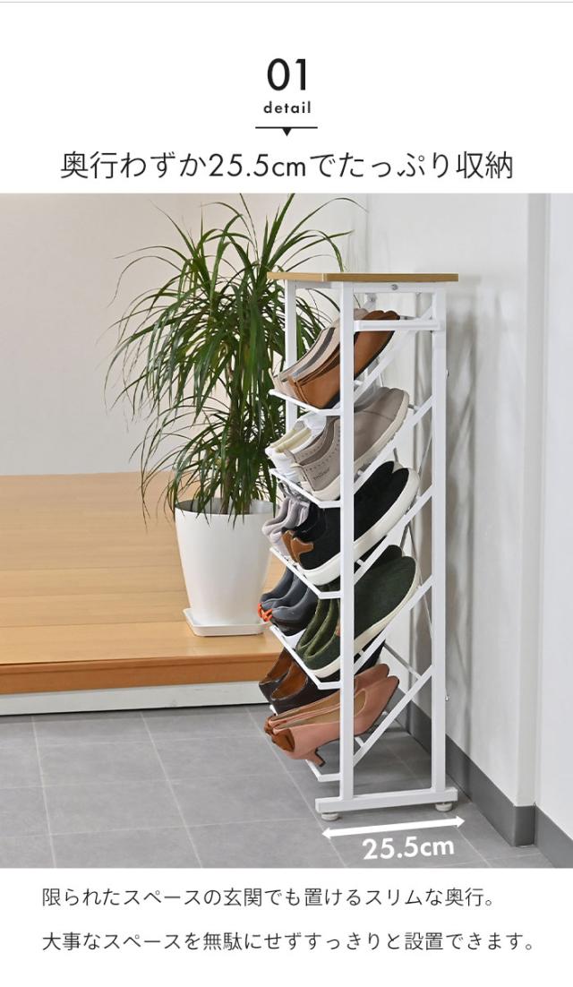 奥行わずか25.5cmとスリムなのに、最大10足収納できるシューズラック。