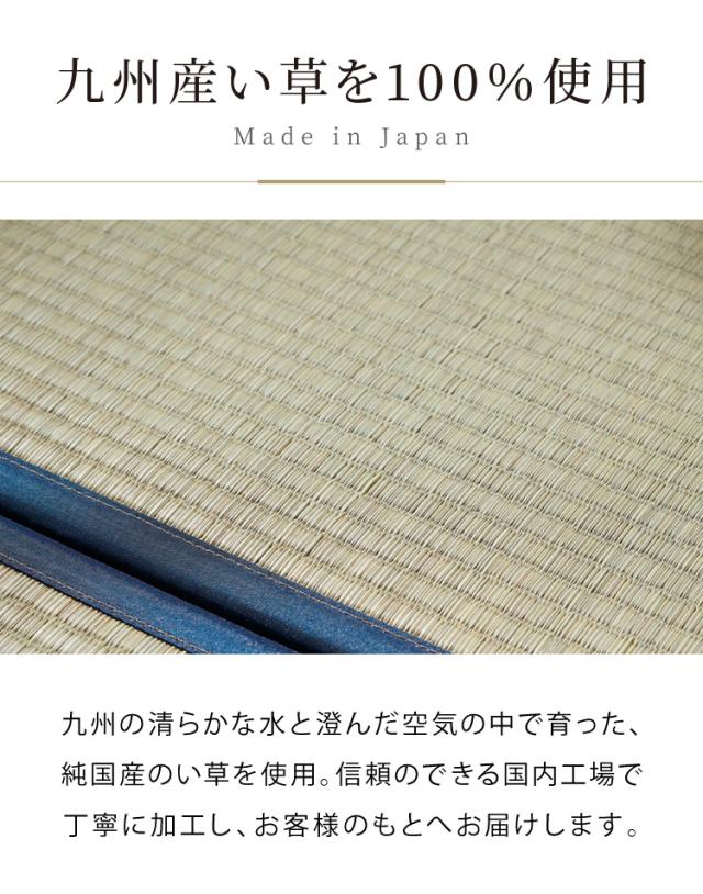 ■ い草は九州産のみを使用。日本の風土で育った安心の草です。一本一本が太く、表皮が厚く繊維がキメ細かいので弾力性があり、耐久性に優れています。