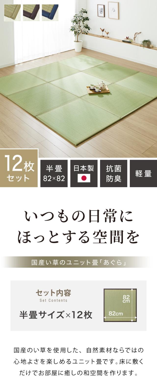 国産 い草 置き畳 ユニット畳 82×82cm 12枚セット 日本製 半畳 畳 ユニット 畳マット藺草 和風 和室 リビング 和家具 簡単 軽量 防音 傷防止 子供部屋 キッズ ふっくら 和モダン(代引不可)【送料無料】