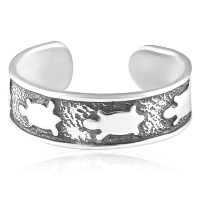 シルバー925製のシルバーリングに何匹ものウミガメをデザインしたオシャレな足の指輪トーリング。