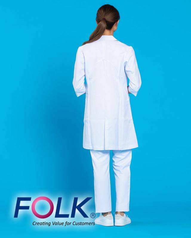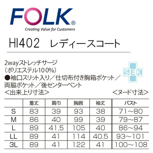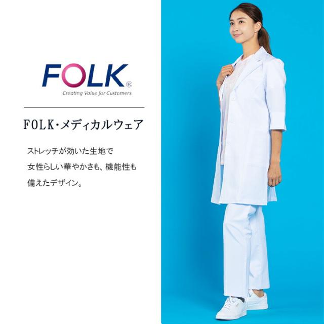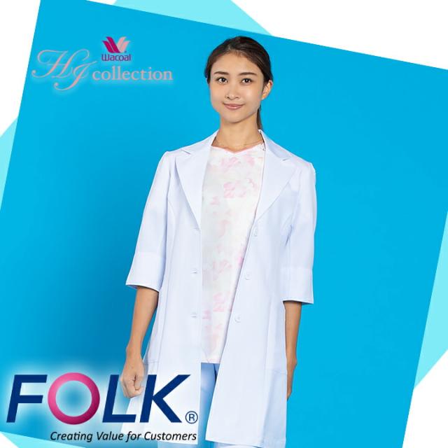 フォーク ドクターコート HI402 ワコール レディース 女性用 白衣 医療 医師 薬剤師 通気性 シングルコート スタイリッシュ FOLK