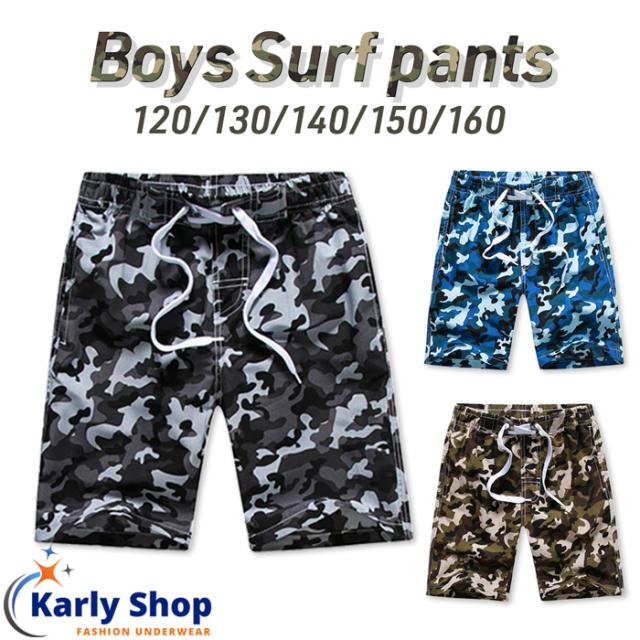 Karly Shop 水着 サーフパンツ 男の子 ボーイズ キッズ ジュニア 子供 男児 海パン 海水パンツ 迷彩柄 インナー付き ポケット付き 膝丈 5部丈 ハーフパンツ スイムウェア カモフラ ミリタリー おしゃれ かっこいい 海水浴 プール 120 130 140 150 160 dm1709