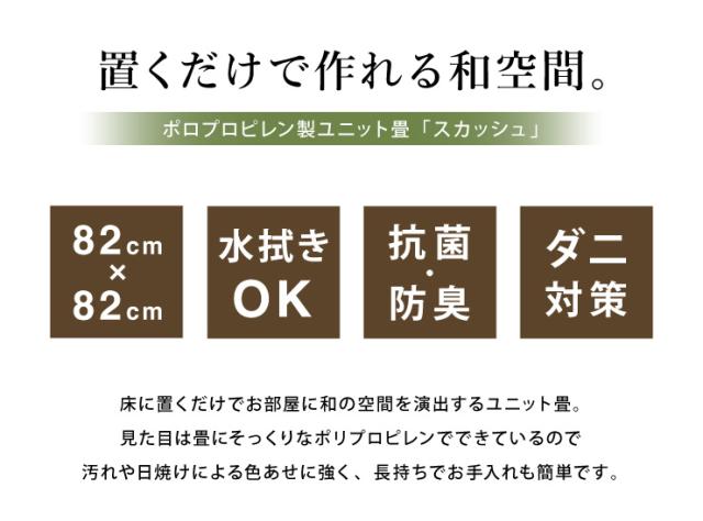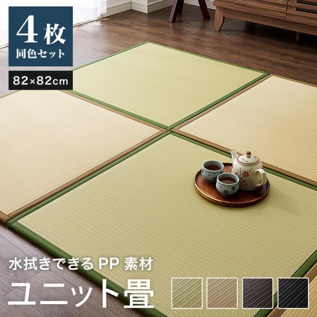 ユニット畳 日本製 同色4枚セット 水拭きできる ポリプロピレン 82×82×1.7cm 国産 畳 置き畳 軽量 軽い 抗菌 防臭 シンプル(代引不可)