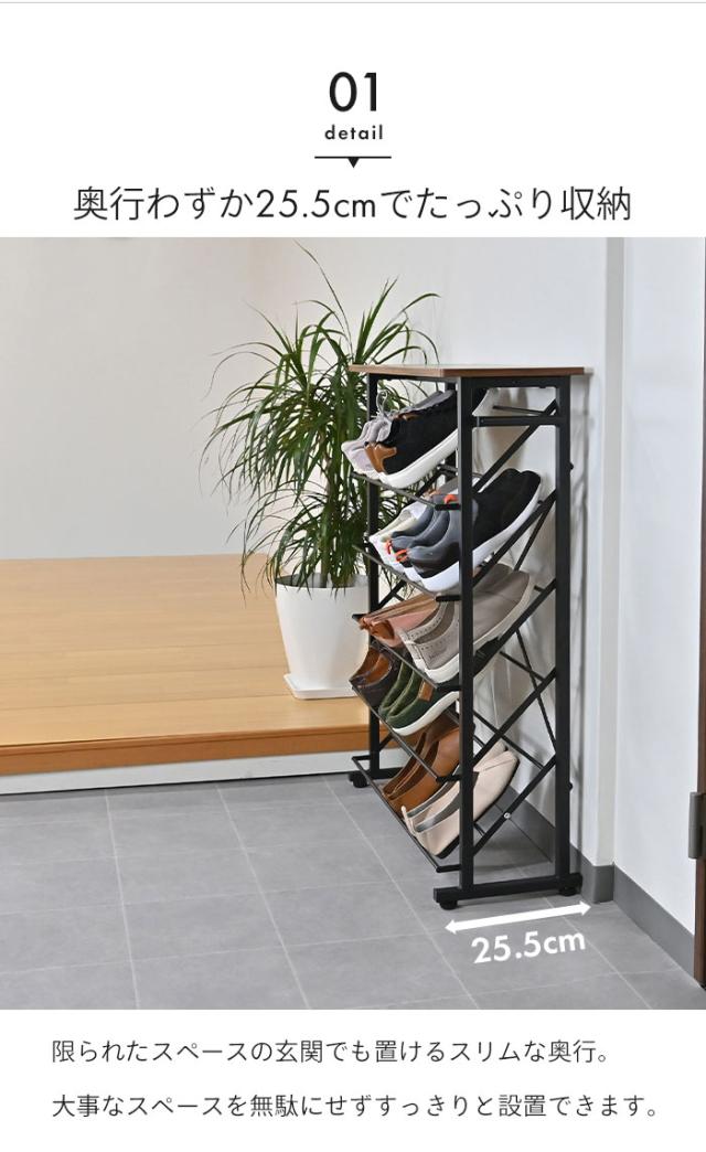 奥行わずか25.5cmとスリムなのに、最大15足収納できるシューズラック。