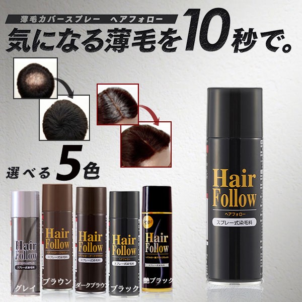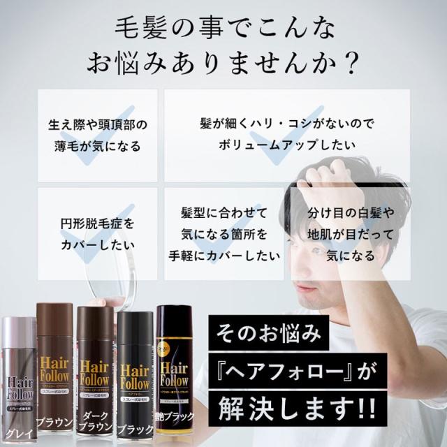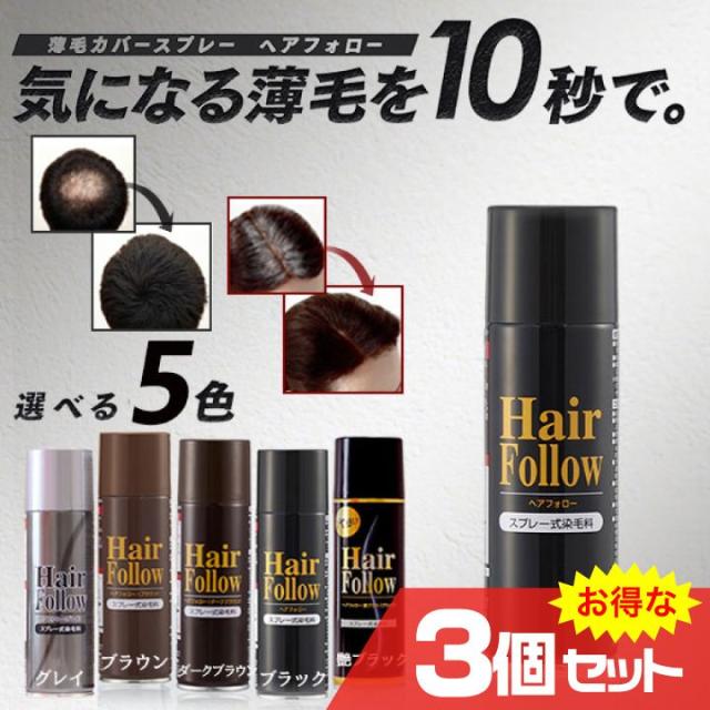 ヘアフォロー 3個セット スプレー式染毛料 ボリュームアップ 生え際 ブラック ダークブラウン ブラウン グレイ