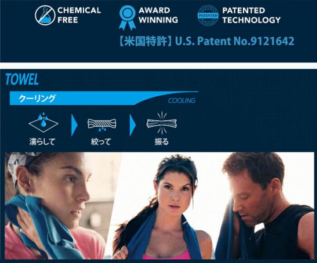 アメリカの特許技術を使用した水で濡らすと冷える生地を使用したアームスリーブ【米国特許取得済 U.S PAT.No.8440119】。