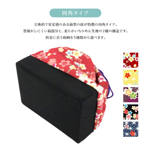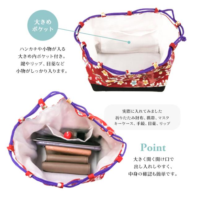 卒業式などの袴姿で大活躍する、ちりめん生地の和柄巾着です。
