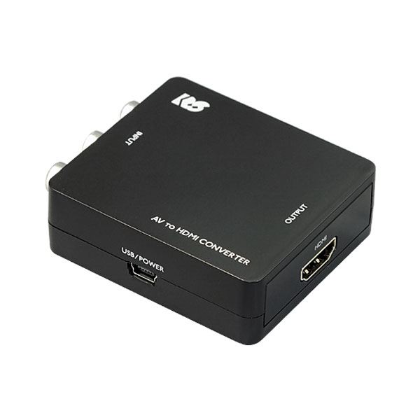 RS-AV2HD1は、コンポジット(AV)出力機能のみの映像機器を、最新のテレビやプロジェクターなどのHDMI入力のみ搭載された機器へ接続することのできる映像信号コンバーターです。