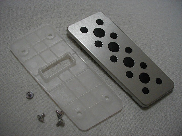 (カーペットに接着されているタイプのゴム製フットレストが有る場合はカッター等で剥がし、 カーペットを固定パネルの四角い部分に合わせて穴を開け、固定させる必要があります)